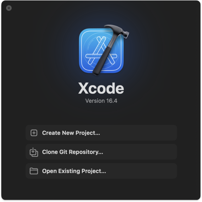 Xcode를 실행해 보면, 아래 그림과 같이 로컬에서 새로운 프로젝트를 만들 것인지 (Create New Project) 원격 저장소에 있는 프로젝트를 복재해와서 진행 할 것인지 (Clone Git Repository) 의 갈림길이 처음 놓이게 된다.