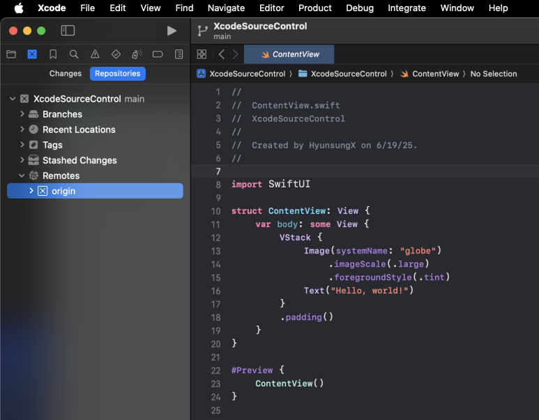 Xcode에서 GitHub 원격저장소 설정