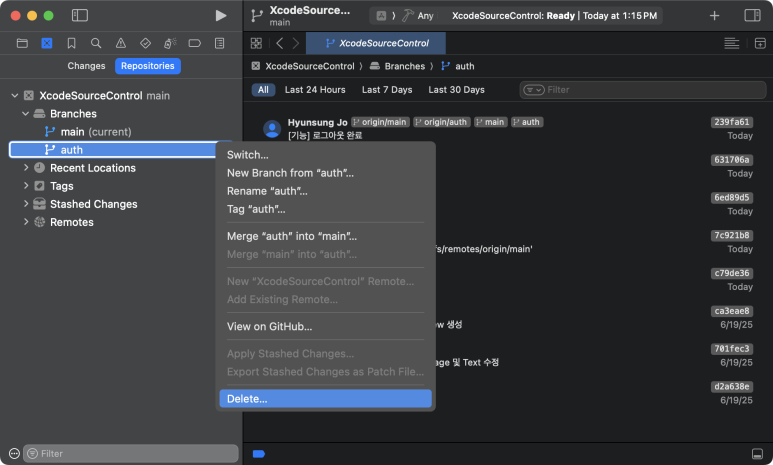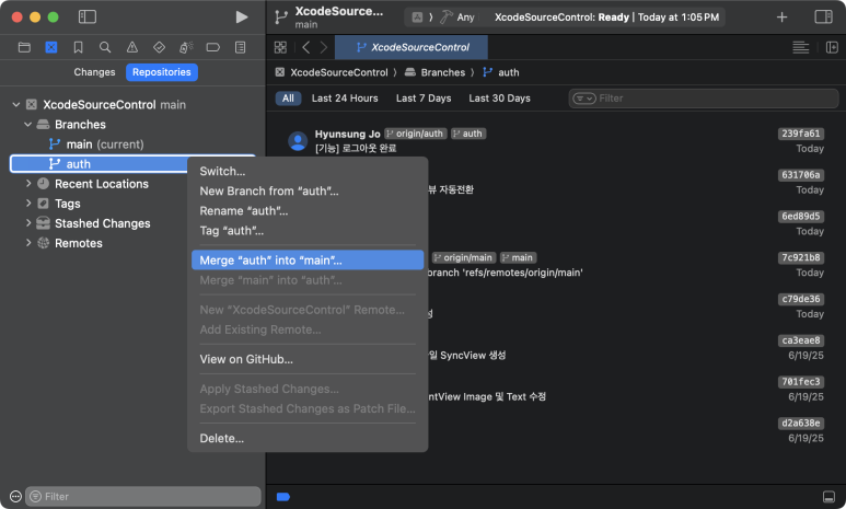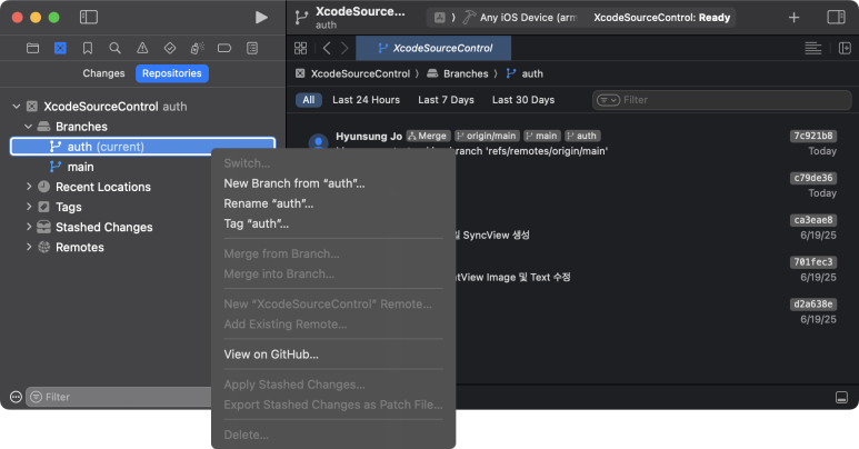 | Xcode에서 소스코드 커밋하기 (0) | 2025.06.28 |