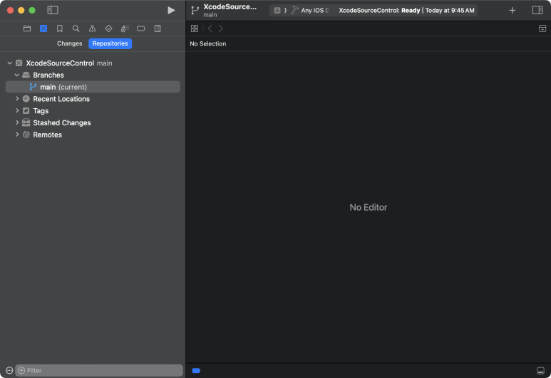 Push 후에 Xcode를 다시 확인해 보면, 아래 그림과 같이 변동 사항들이 모두 없어졌음을 확인 할 수 있다. 만약 Push 후에 Repositories 탭에 아직 숫자가 남아 있다면, Xcode를 재실행시키면 완전히 반영 된다. (Xcode의 문제점...)